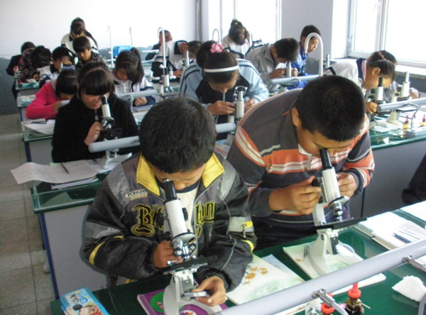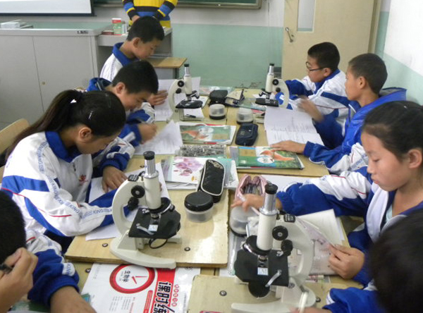 學生興致勃勃的觀看切片